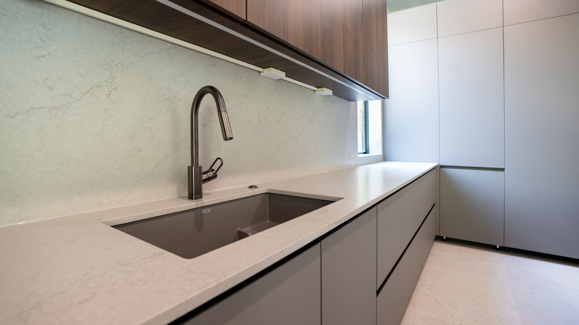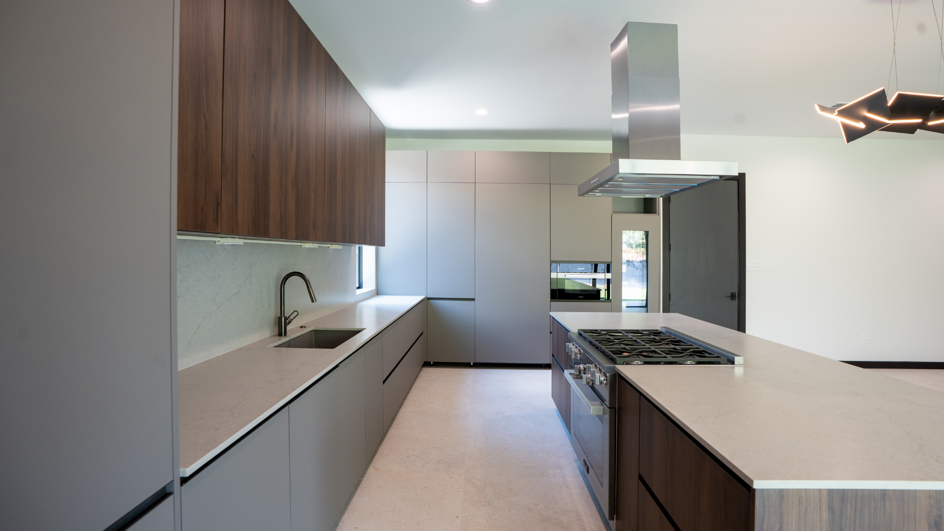 Modern home design prioritizes clarity, intention, and simplicity. Rather than relying on cold minimalism, it uses purposeful choices where every element serves a role. At its best, modern design creates spaces that feel calm, functional, and effortlessly sophisticated. This custom modern home brings those principles to life through bright stone surfaces and rich wood finishes.