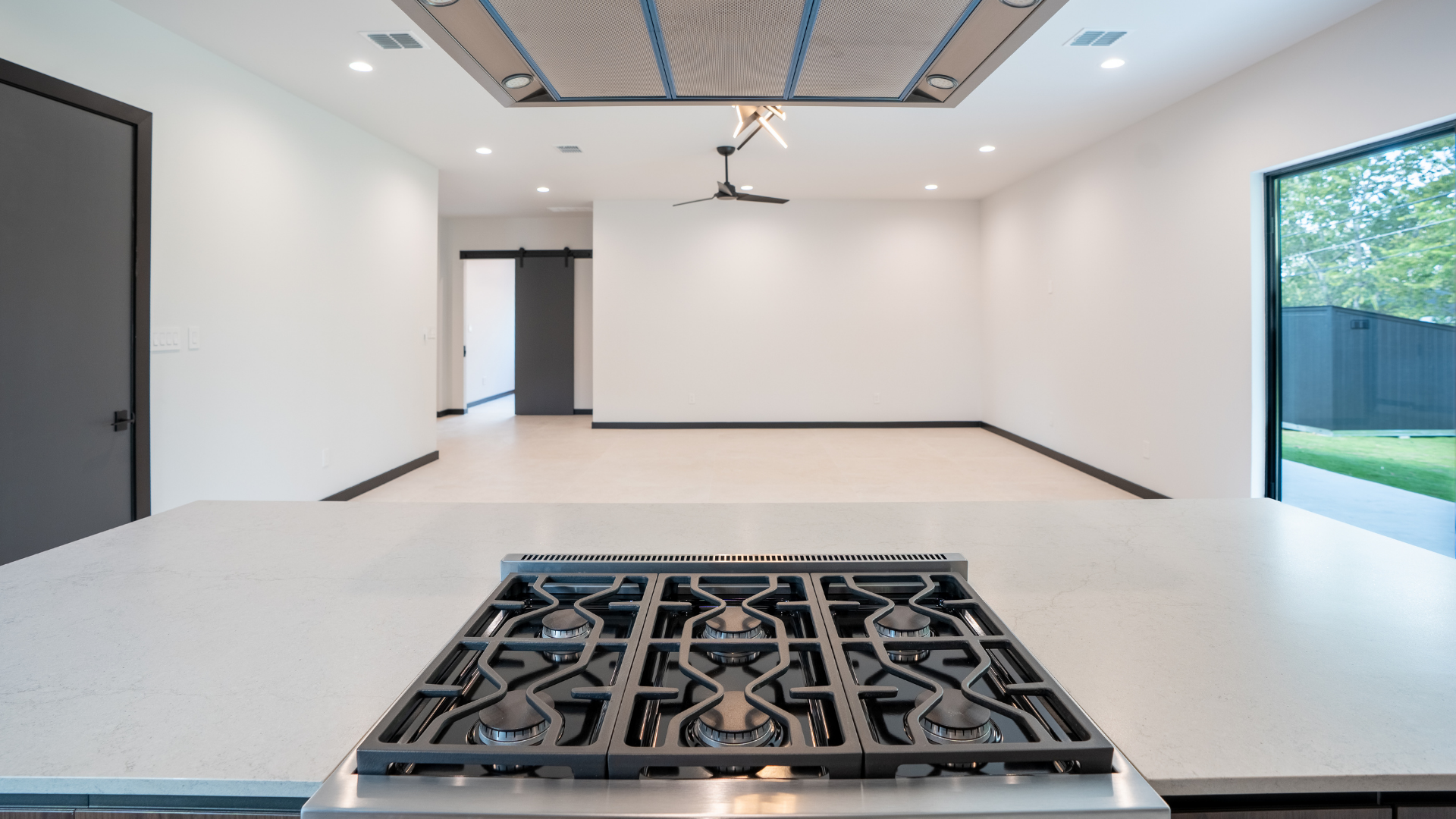 Inside, the spacious great room features a cohesive flow to the kitchen and dining areas, perfect for everyday life and gatherings. The custom kitchen design showcases custom cabinetry, sleek surfaces, and high-performance appliances. The outcome, a functional space that’s as stylish as it is efficient.