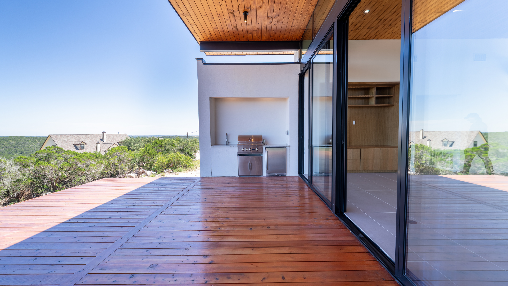 Outdoor living was a key focus of this custom build. Covered patios and entertaining areas extend the living space outdoors, allowing the homeowners to enjoy the Hill Country lifestyle year-round. Whether hosting friends or unwinding at the end of the day, the exterior spaces are designed to feel like a natural extension of the home.