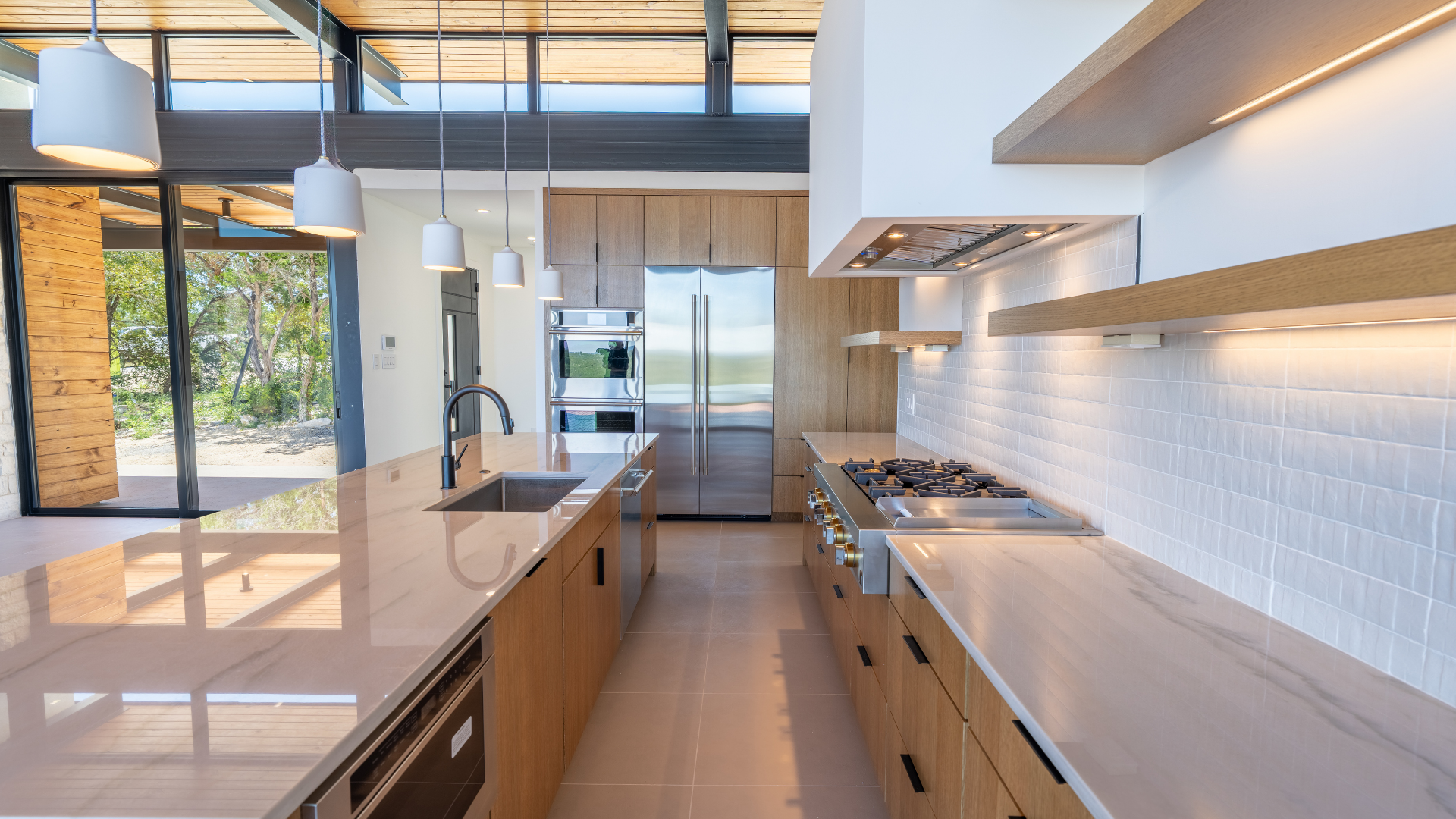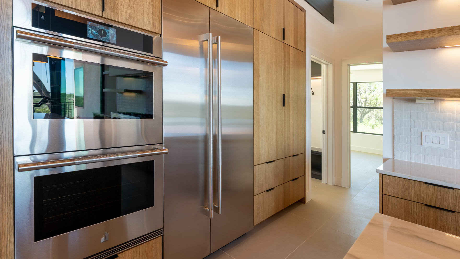 At the heart of the home is a chef-inspired kitchen, designed with both beauty and function in mind. Custom cabinetry, a statement island, premium appliances, and carefully selected finishes create a space that feels refined yet approachable. This space is perfect for hosting gatherings or enjoying quiet mornings overlooking the Hill Country.