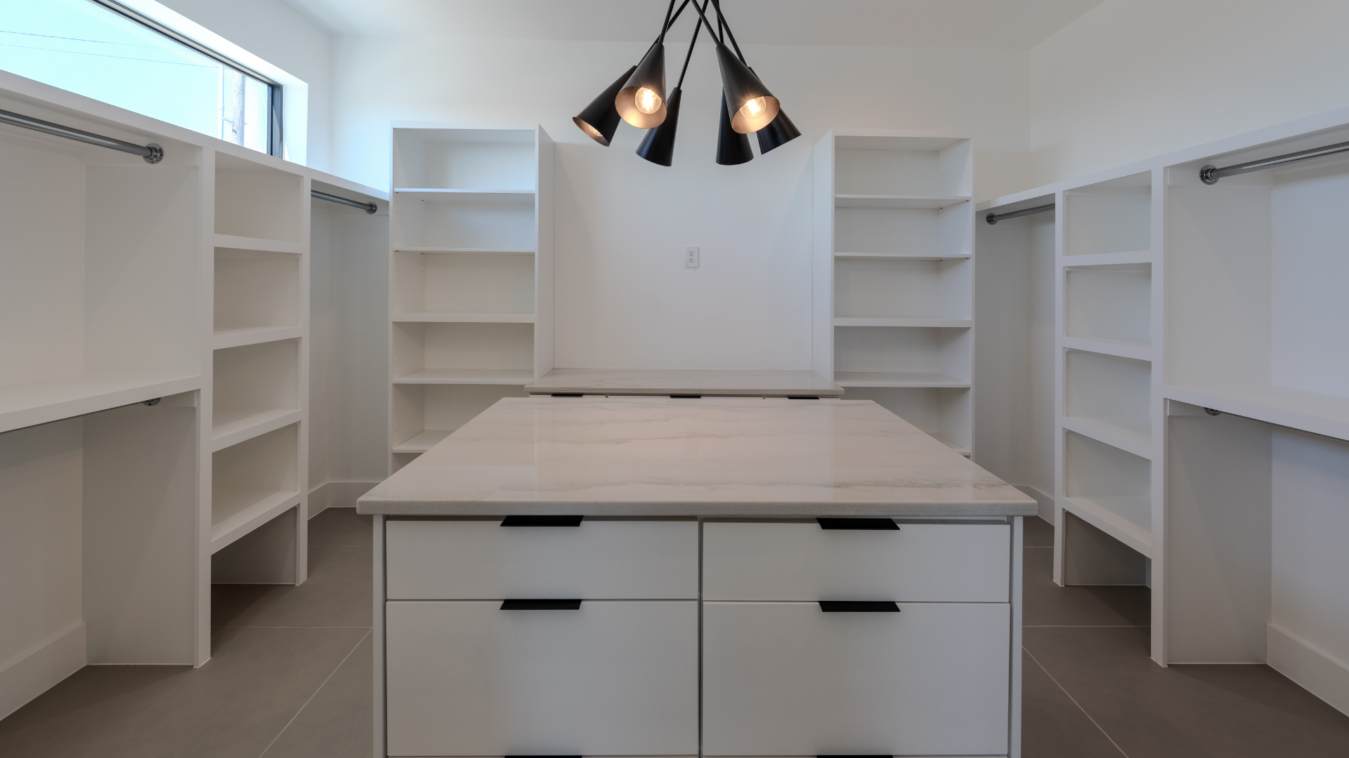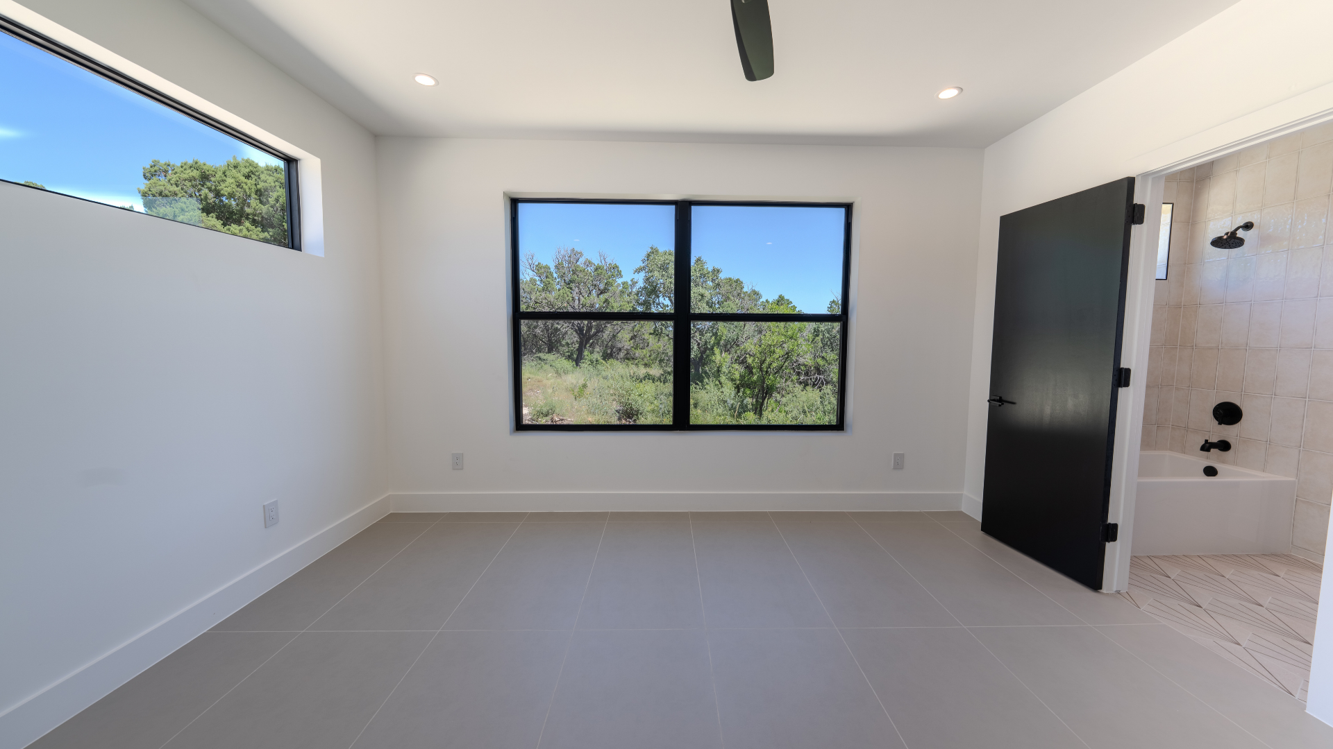 The primary suite serves as a private retreat, offering serene views and a spa-like bathroom. With luxury finishes, a walk-in shower, and a freestanding tub, it has everything you would need. Custom closets and storage solutions throughout the home ensure that space is as practical as it is beautiful.