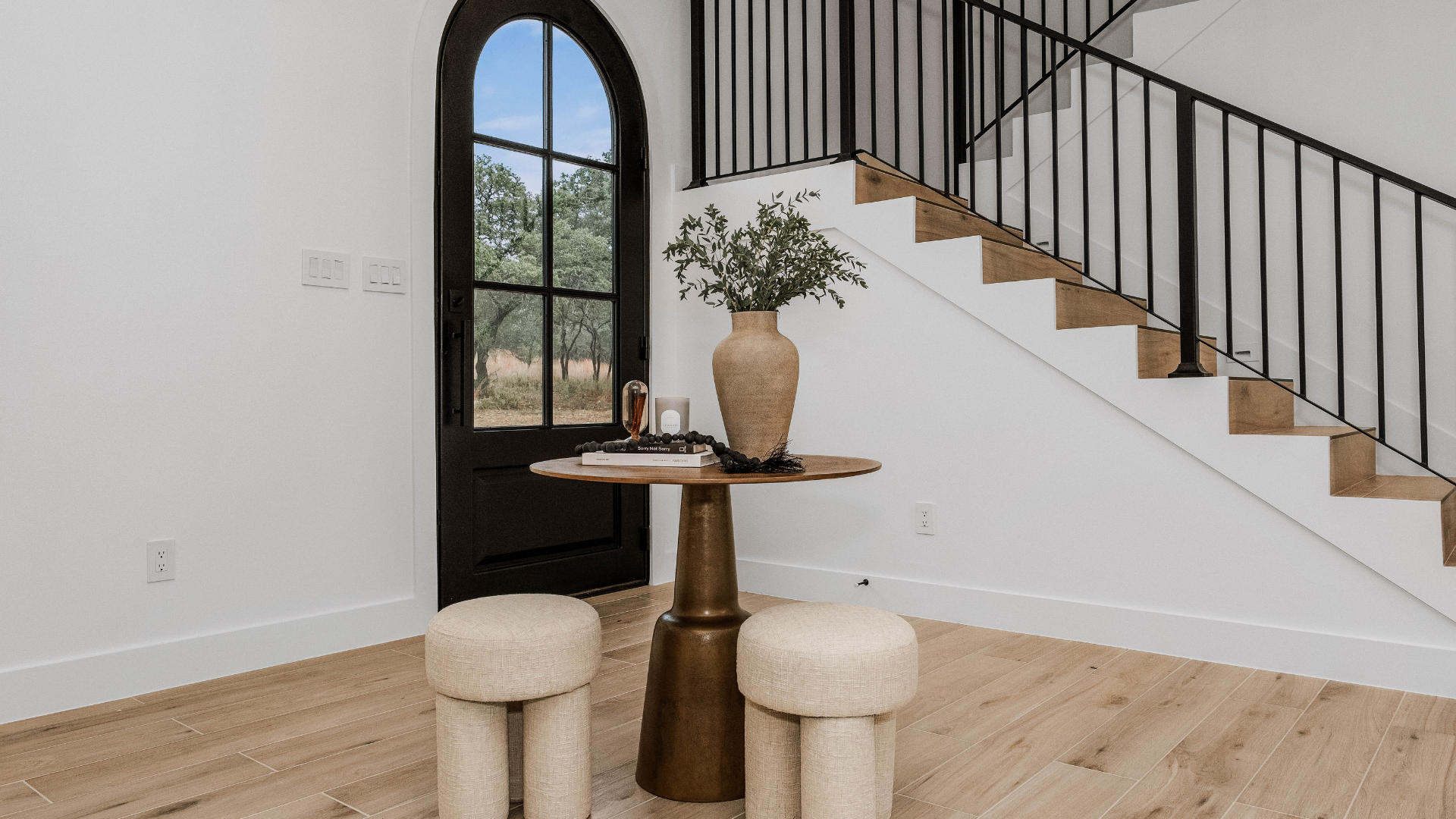 Nestled within the natural beauty of the Hill Country, the exterior features a balanced mix of stone and warm wood accents. These materials were selected not only for their visual appeal, but also for their ability to withstand the Texas climate. As a result, the home maintains a strong visual presence while blending seamlessly into the Hill Country terrain.